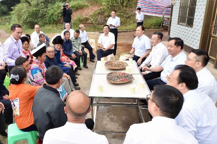當(dāng)天,陳肇雄一行深入到敘永縣白臘苗族鄉(xiāng)高峰村黨群服務(wù)中心、白臘苗族鄉(xiāng)亮窗口村電科牛場,了解黨建引領(lǐng)促進脫貧攻堅、產(chǎn)業(yè)發(fā)展形成鞏固脫貧成果“造血”機制情況;走進貧困戶家中,仔細(xì)察看了解他們的生活狀況和脫貧情況。