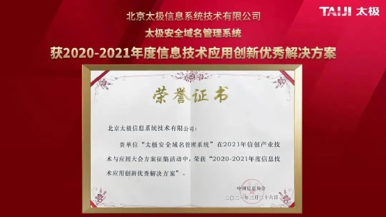 “太極安全域名管理系統”曾榮獲2020—2021年度信息技術應用創新優秀解決方案