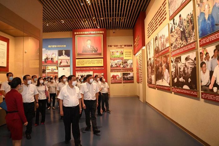 黨的歷史是最生動、最有說服力的教科書。沿著百年黨史脈絡,全體人員依次參觀了“建立中國共產黨奪取新民主主義革命偉大勝利”“成立中華人民共和國進行社會主義革命和建設”“實行改革開放開創和發展中國特色社會主義”“推進中國特色社會主義進入新時代全面建成小康社會開啟全面建設社會主義現代化國家新征程”等四大展區。珍貴的文物實物、翔實的檔案資料、生動的圖片視頻、逼真的復原景觀吸引著全體人員駐足凝視、重溫歷史。