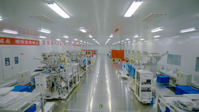 穿過電科裝備北京爍科中科信公司制造中心的風淋系統,整條離子注入機研制產線映入眼簾,一臺臺設備完成裝配調試后,輸送至各集成電路先進產線,參與“中國芯”制造。