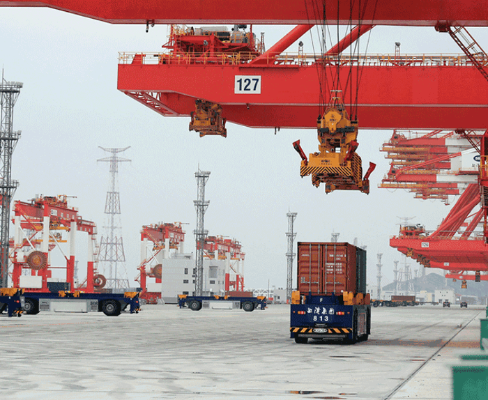 在某國內大型物流港口,無人作業自動引導車車循環往來,超車換道、裝箱卸貨、多車協同等作業流暢鏈接……